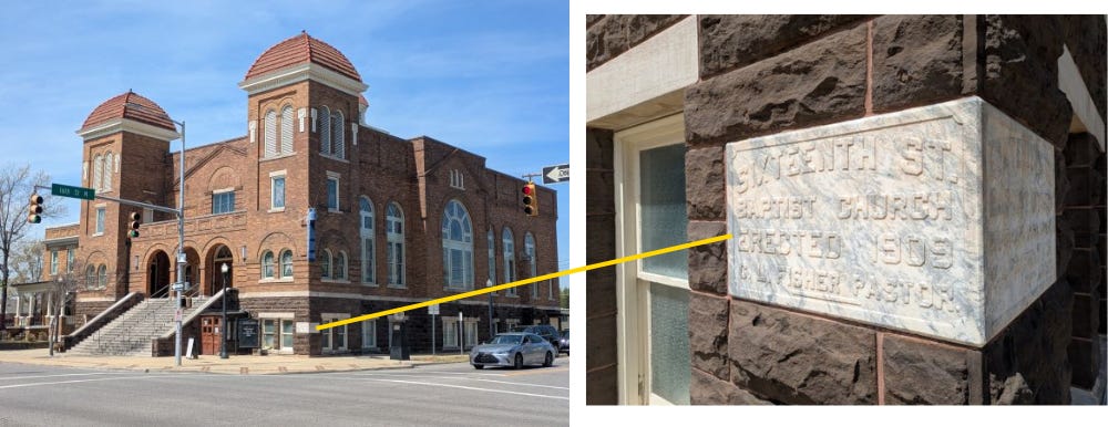 I placed my hands on the stone walls of the repaired church building, still in use today. I walked up the front steps where history had walked. I looked down toward the park, listening, searching, picturing the chaos on the street—both from the church bombing and the Children’s March the previous May.
