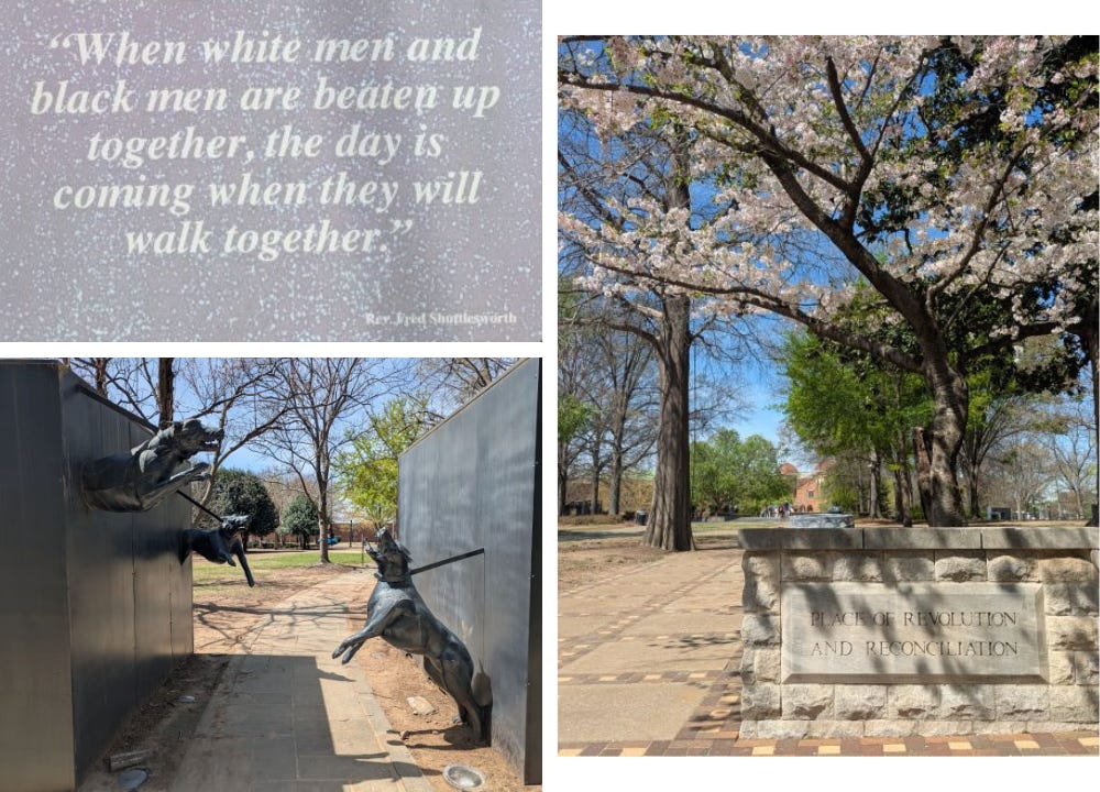 Although we would have liked to stay in Birmingham longer, both to hear more stories and see the hope of reconciliation represented there—as well as to rest our weary hearts—we had to move along. We wanted to make one more significant stop before the day was through. Although we knew it would come at somewhat of an emotional cost, we wanted to pay our respects to Anniston.
